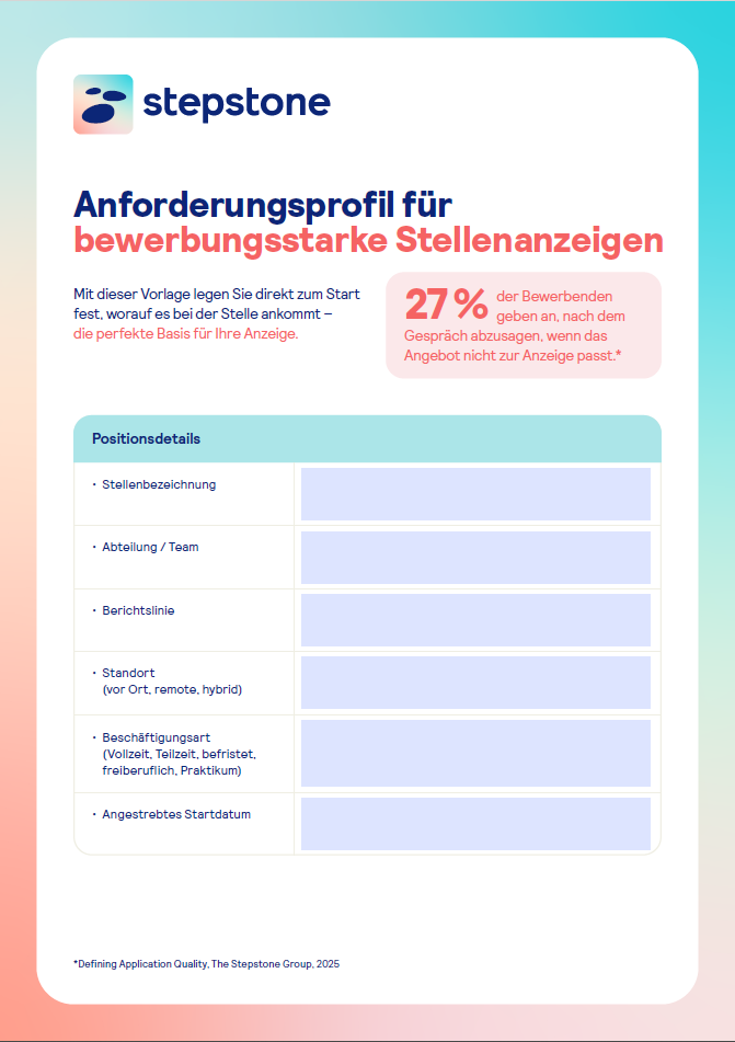 Ein klar definiertes Anforderungsprofil bildet die Grundlage für eine überzeugende und zielgerichtete Stellenanzeige. Es sorgt dafür, dass die Ansprache passender Kandidat*innen gelingt – präzise, authentisch und auf den Punkt.
