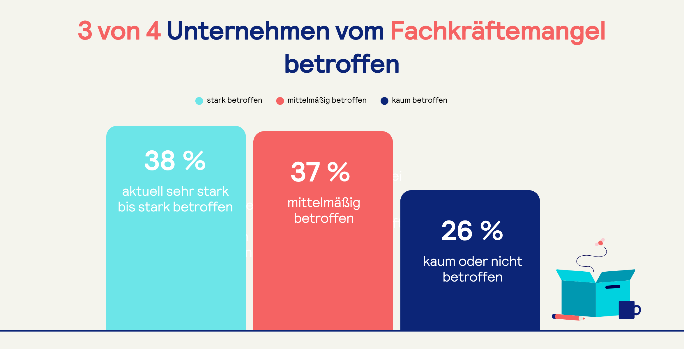 Diese Tendenz wird durch die Alterung der Erwerbsbevölkerung und die Abnahme der Nachwuchskräfte durch geburtenschwächere Jahrgänge verstärkt und breitet sich zunehmend auf alle Branchen aus. Für Unternehmen wird es daher immer wichtiger, im Wettbewerb um Talente zu bestehen.