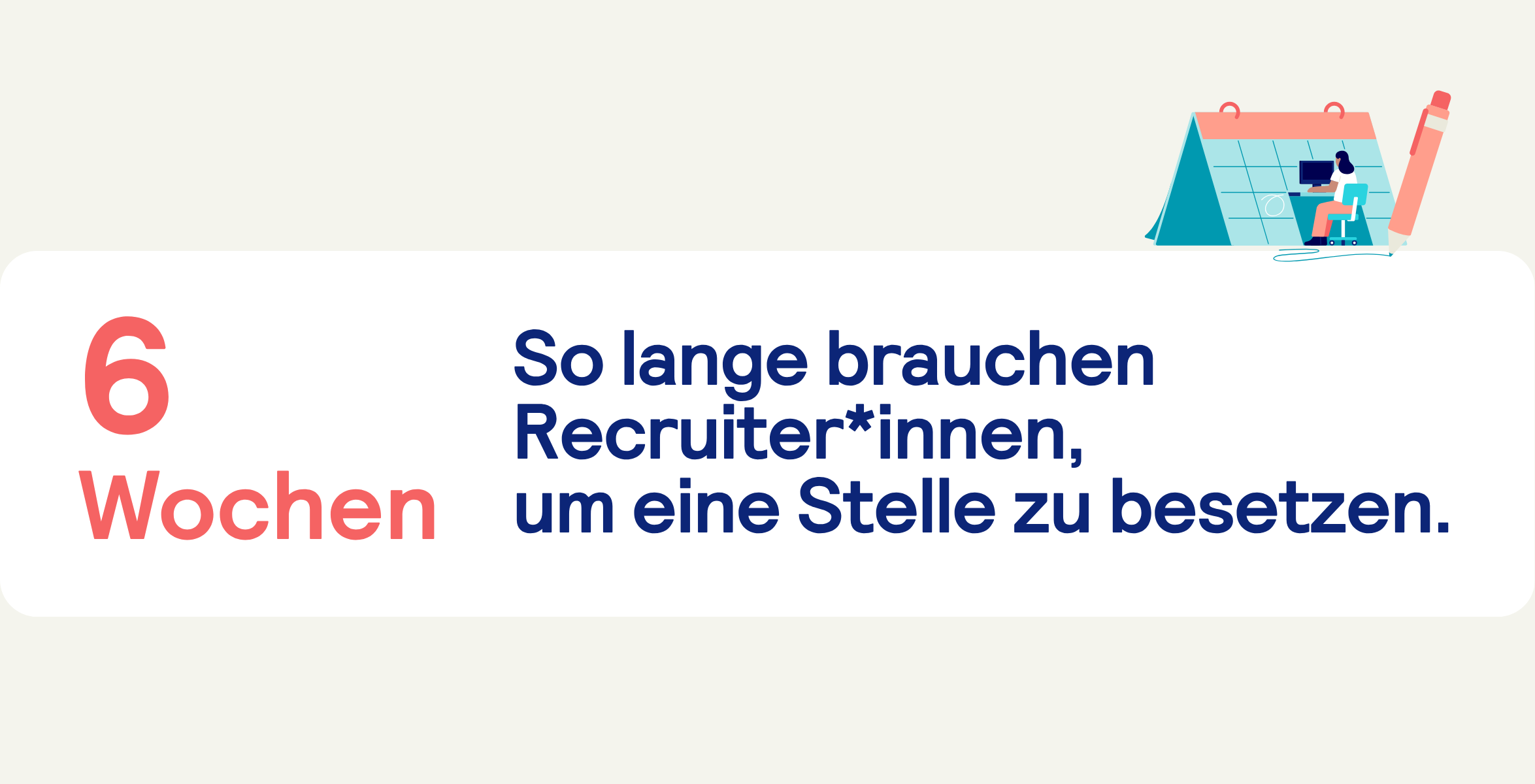 Im Schnitt der letzten sechs Monate betrug die Time-to-Hire in Österreich rund 6 Wochen (Medianwert), wobei KMU mit 5 und Unternehmen mit mehr als 250 Mitarbeitenden rund 8 Wochen benötigen, um eine Vakanz zu füllen.