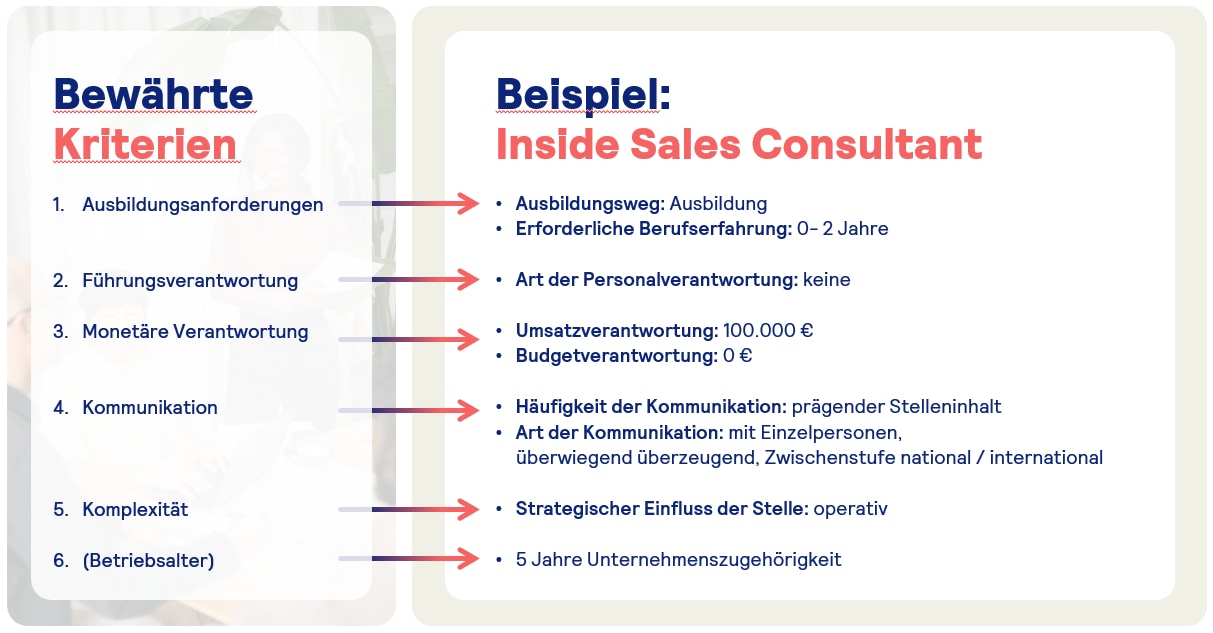 - Bewertungslogiken, die objektive Kriterien zur Einstufung und Bewertung liefern – etwa Know-how, Problemlösungskompetenz oder Einflussbereich.