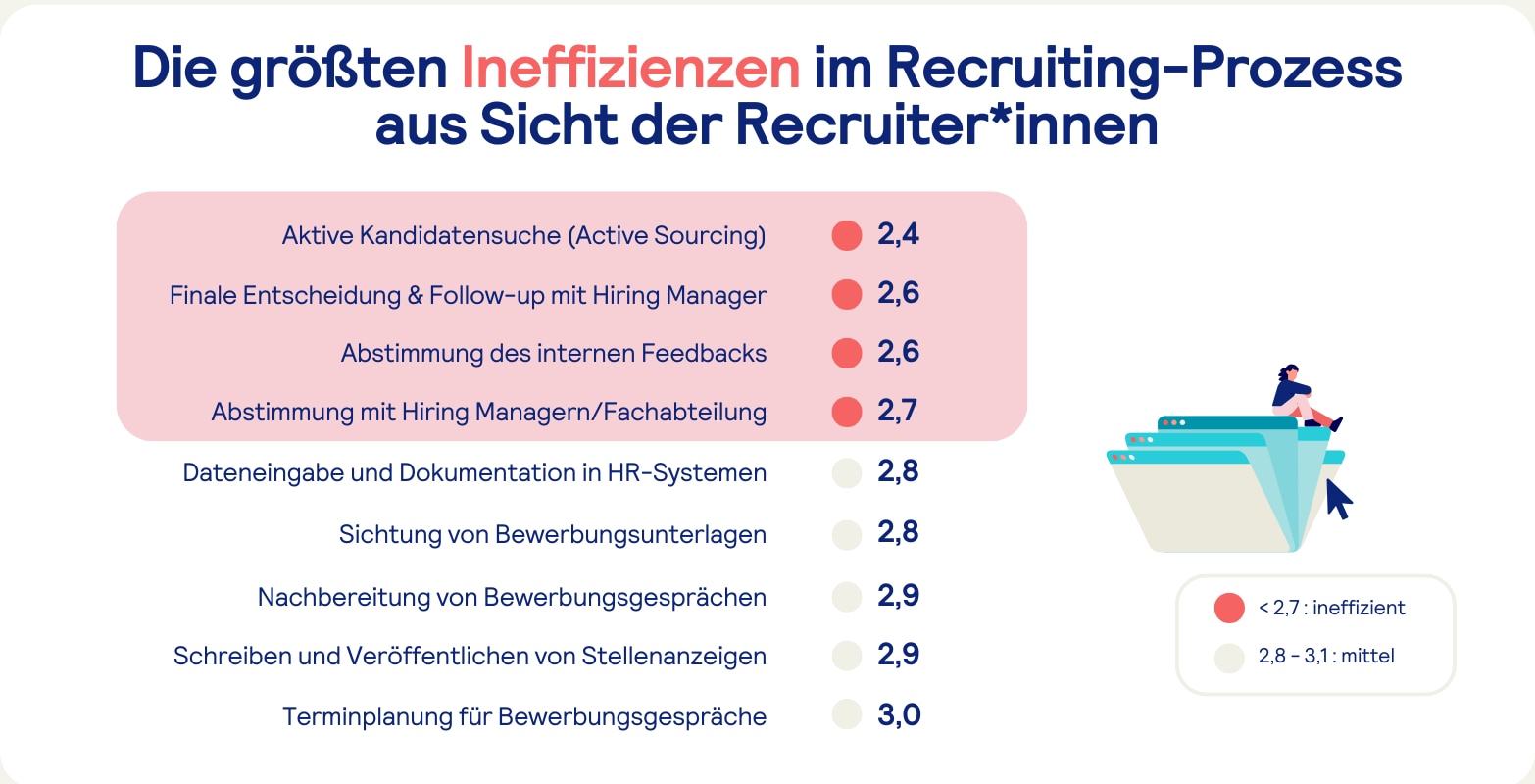 - Stakeholder-Management: Vor allem die Abstimmung mit Hiring Managern erweist sich als ineffizient.